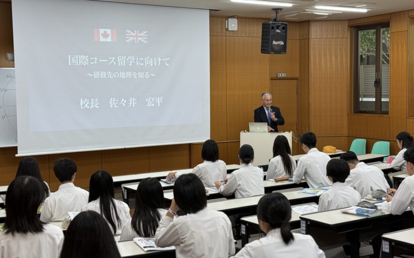【高校】高2国際コース留学前事前学習「学校長による地理講座」を実施