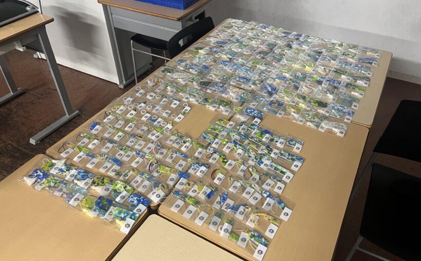その結果、6名の生徒が彼女のもとに集まり、中学生でもできる方法を模索。募金活動とともにお礼品としてエコキャップアート(ペットボトルキャップを加工してできるプラスティック製しおり等)の制作を行っています。