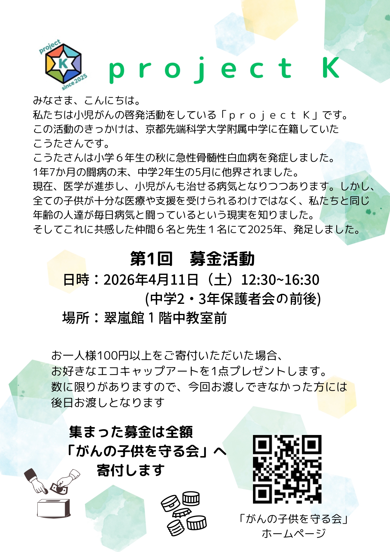 今回は、4月11日の保護者向け学校説明会の際に、生徒の皆さんと保護者の方に対して募金活動、そしてお礼品をお渡しすることができました。