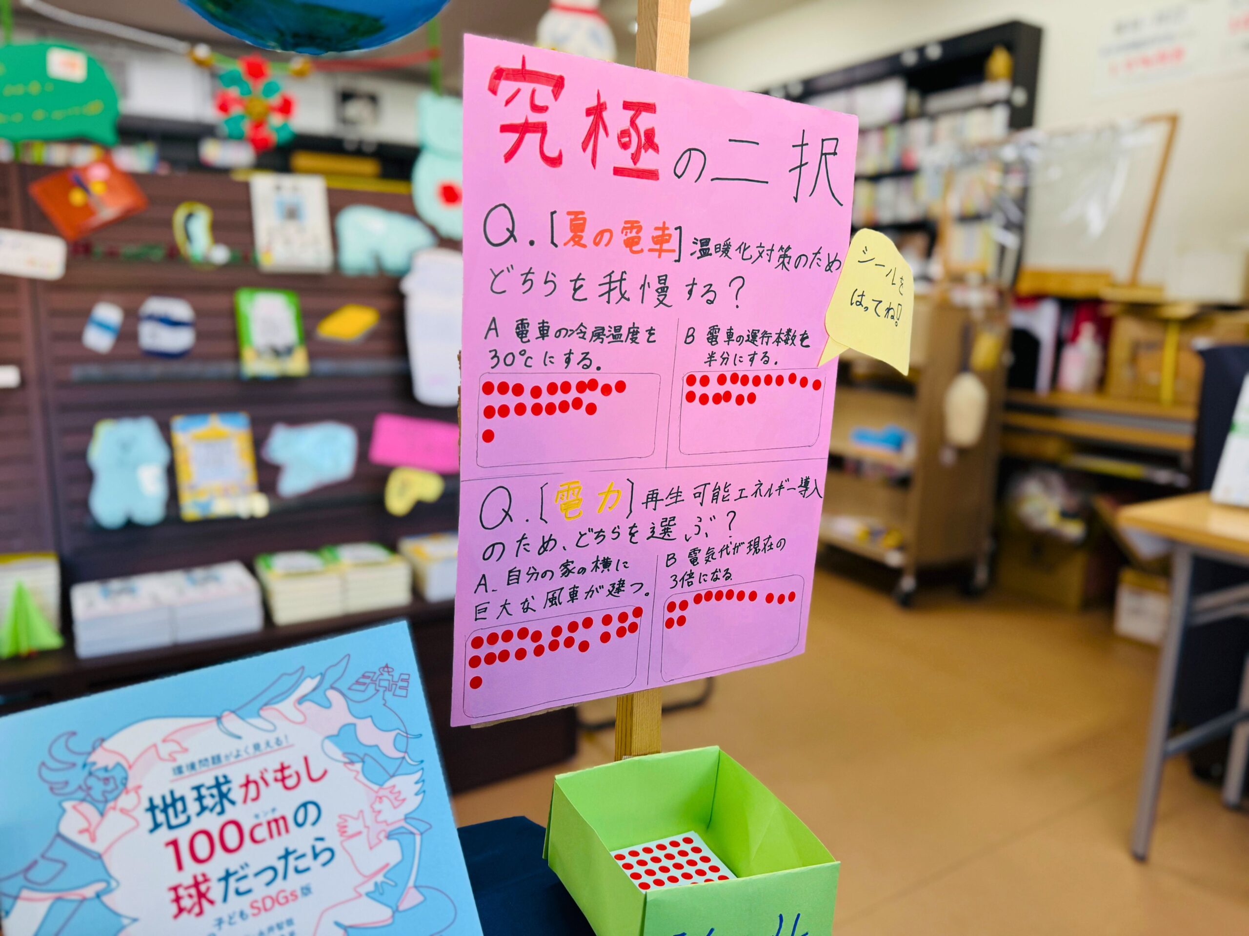 『今まで環境問題を知らなかったり興味を持っていない人たちに、少しでもわかりやすく、楽しく伝えたい』という思いから、参加が出来るアンケート形式のPOPを作成するなど様々な工夫をしていました。