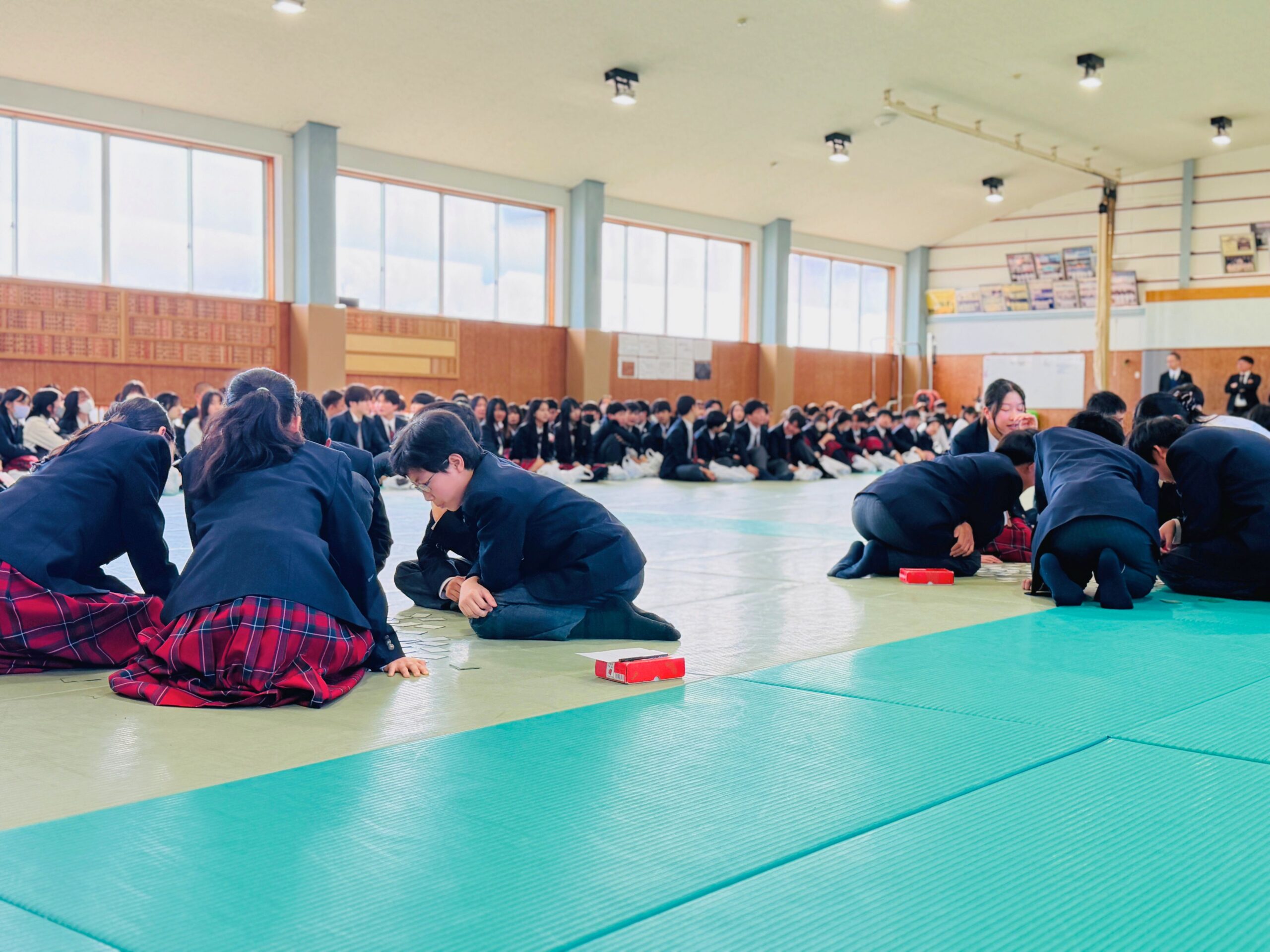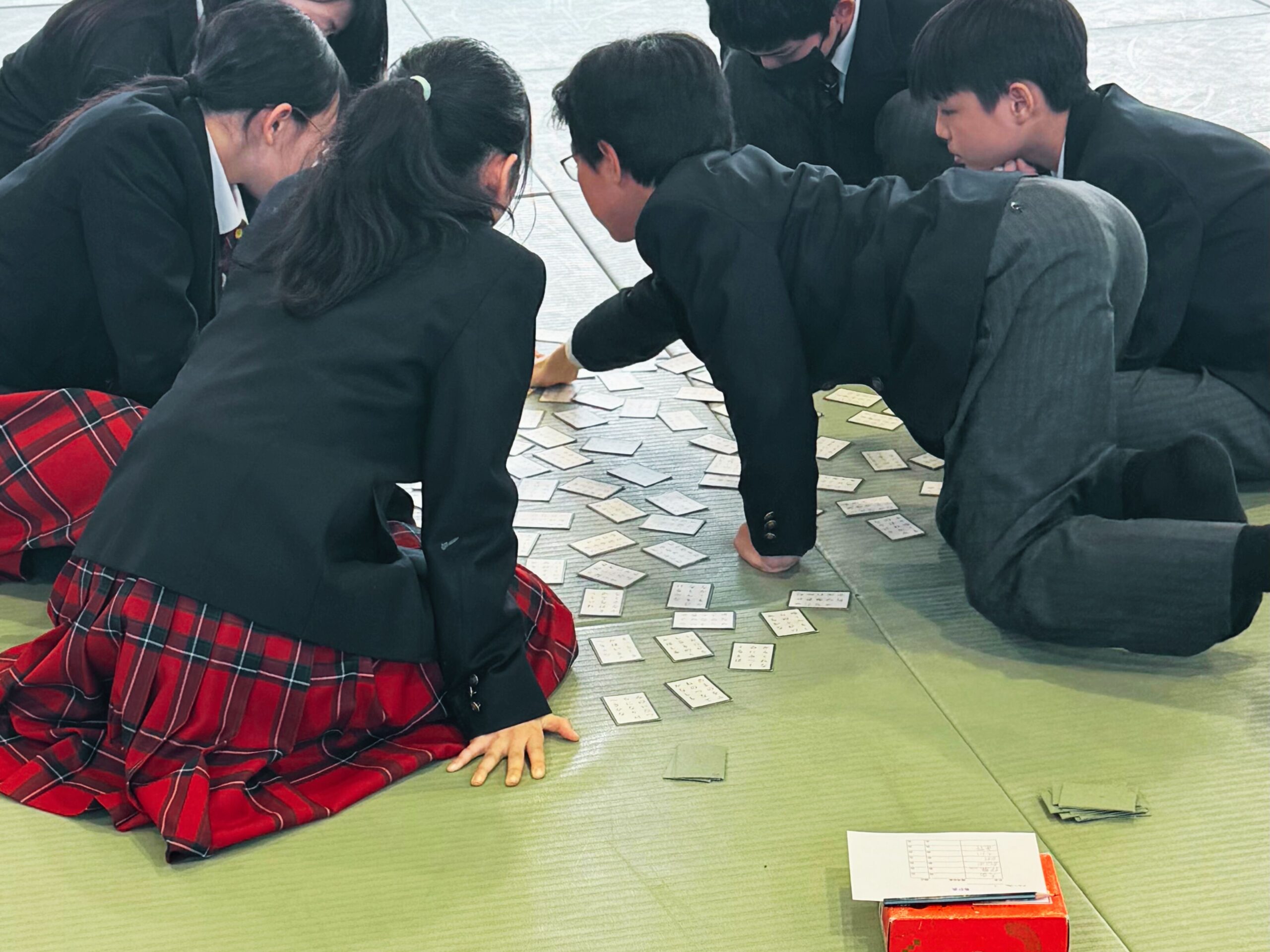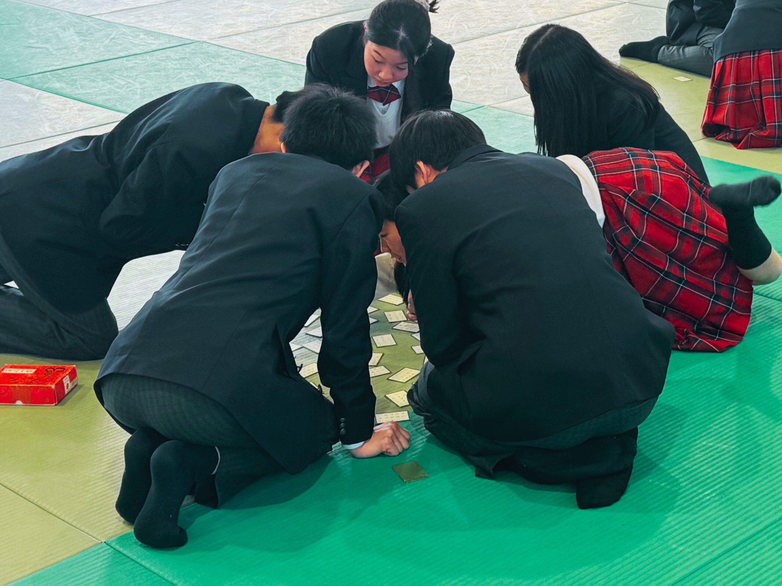 年明けに行う中学校の恒例行事で、毎年、生徒たちが小倉百人一首を使ってかるた大会を行います。