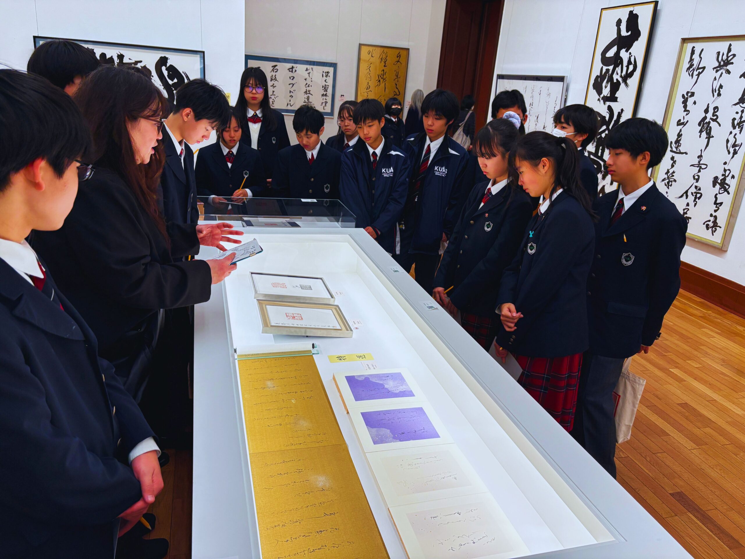 また、書道の坂本先生にも同行して頂き、書の解説もして頂きました。