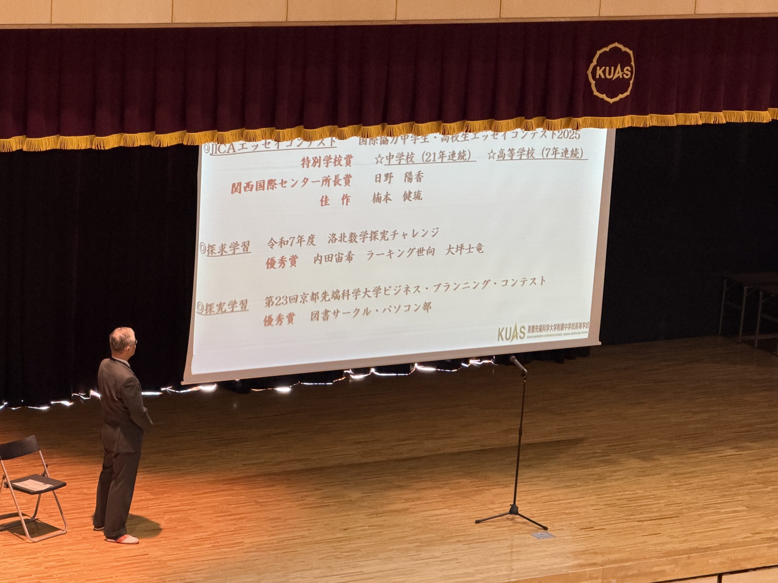 2月2日(月)に全校朝礼を実施しました。 輝かしい結果を残した部活動の報告そして学校長からのお話がありました。 学校長からの挨拶では、部活動などの輝かしい功績を称えるとともに0学期の過ごし方をはじめ 本校芸術科の米田先生の京都新聞掲載記事の紹介などがありました。 次に全校生徒が集まるのは3月25日の進級式です。 残り2カ月、まずは健康に留意し、 そしてお互いを尊重し、敬い、親切そして丁寧な言葉遣いを心がけ 各自の目標を達成していきましょう!