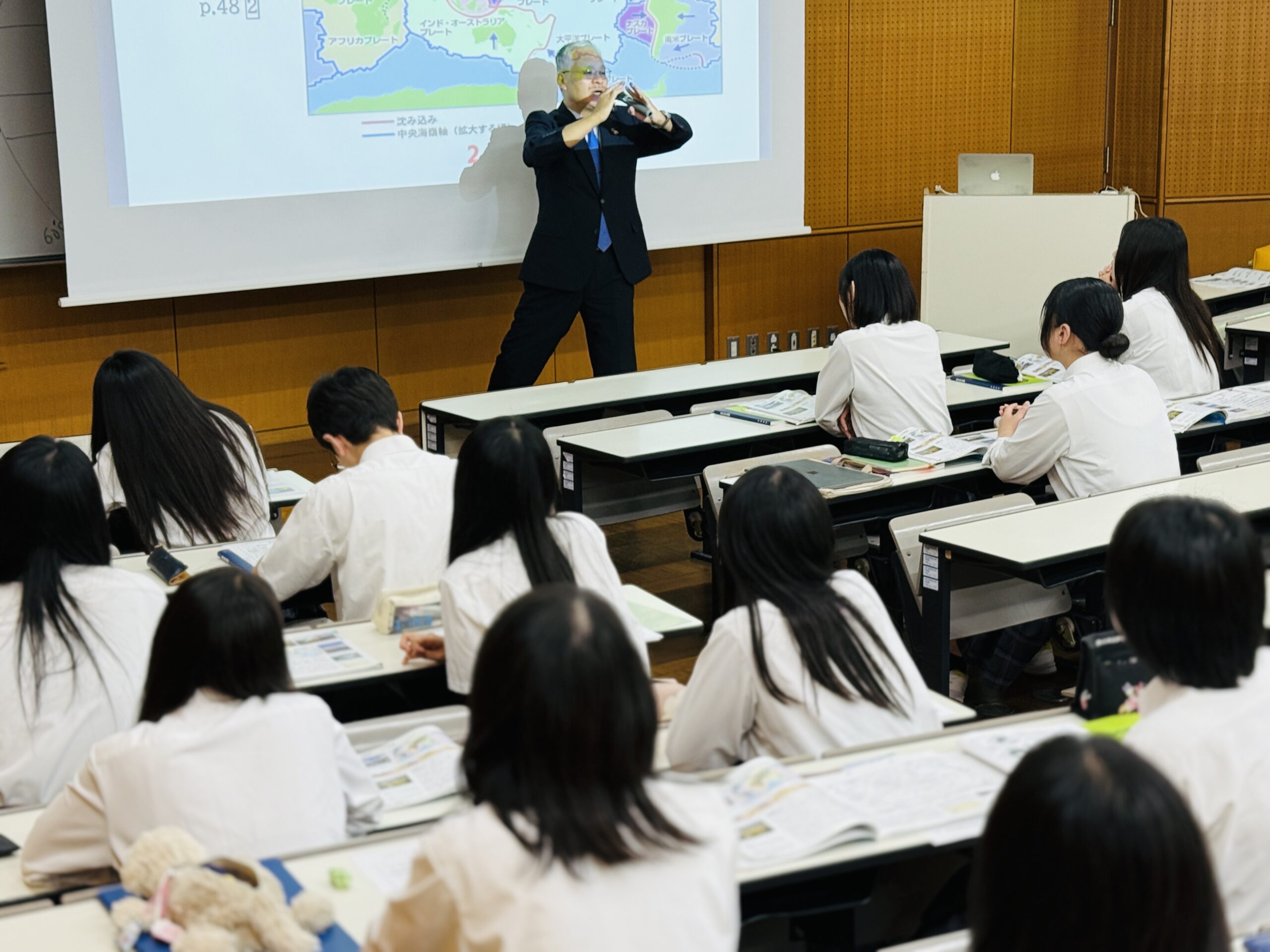 8月21日(木)に、国際コース2年生は、イギリス・カナダへの長期留学に向けた事前学習として、佐々井校長先生による地理講座を行いました。
