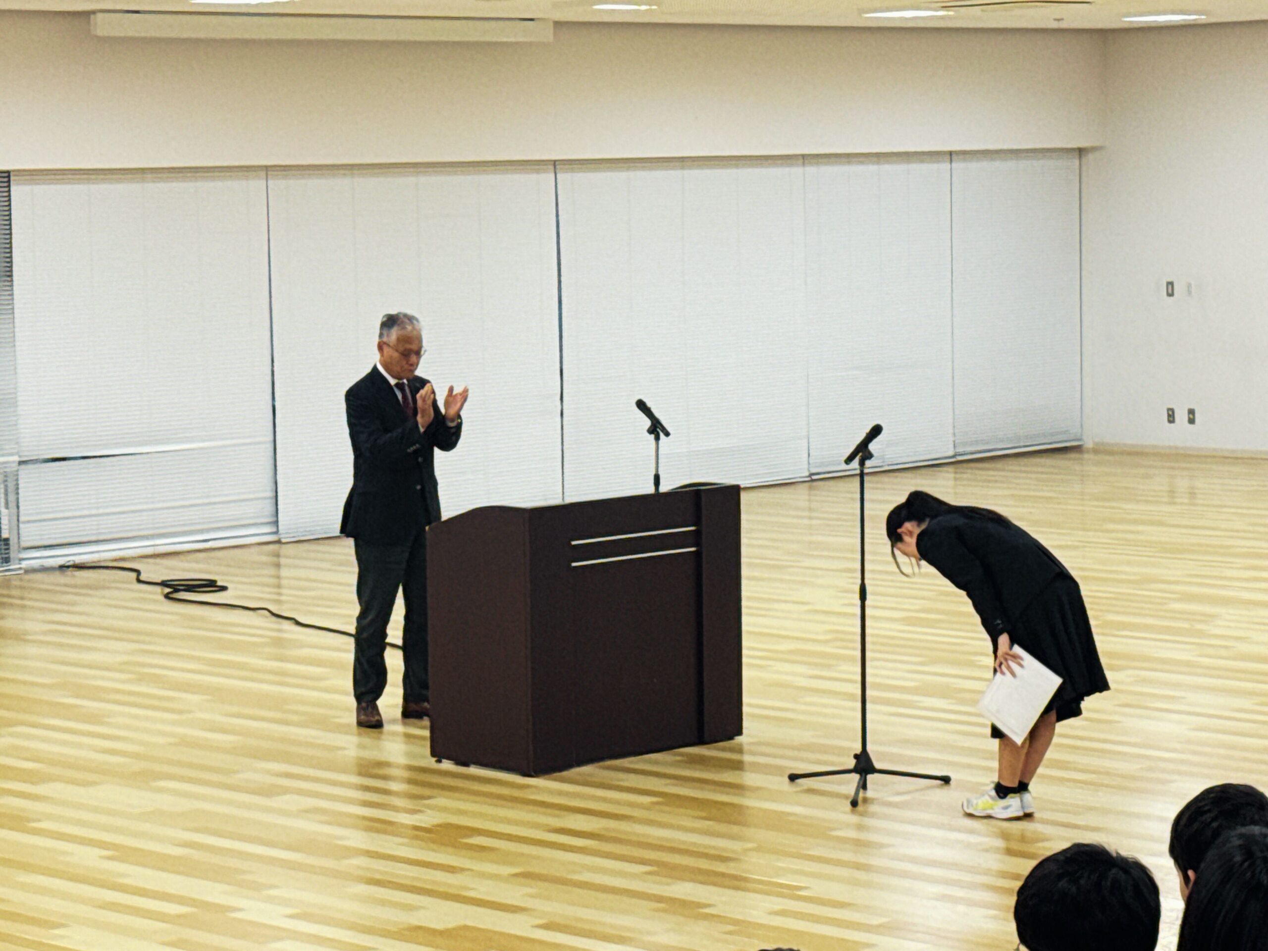 解団式では、代表生徒の挨拶と校長先生からの挨拶がありました。