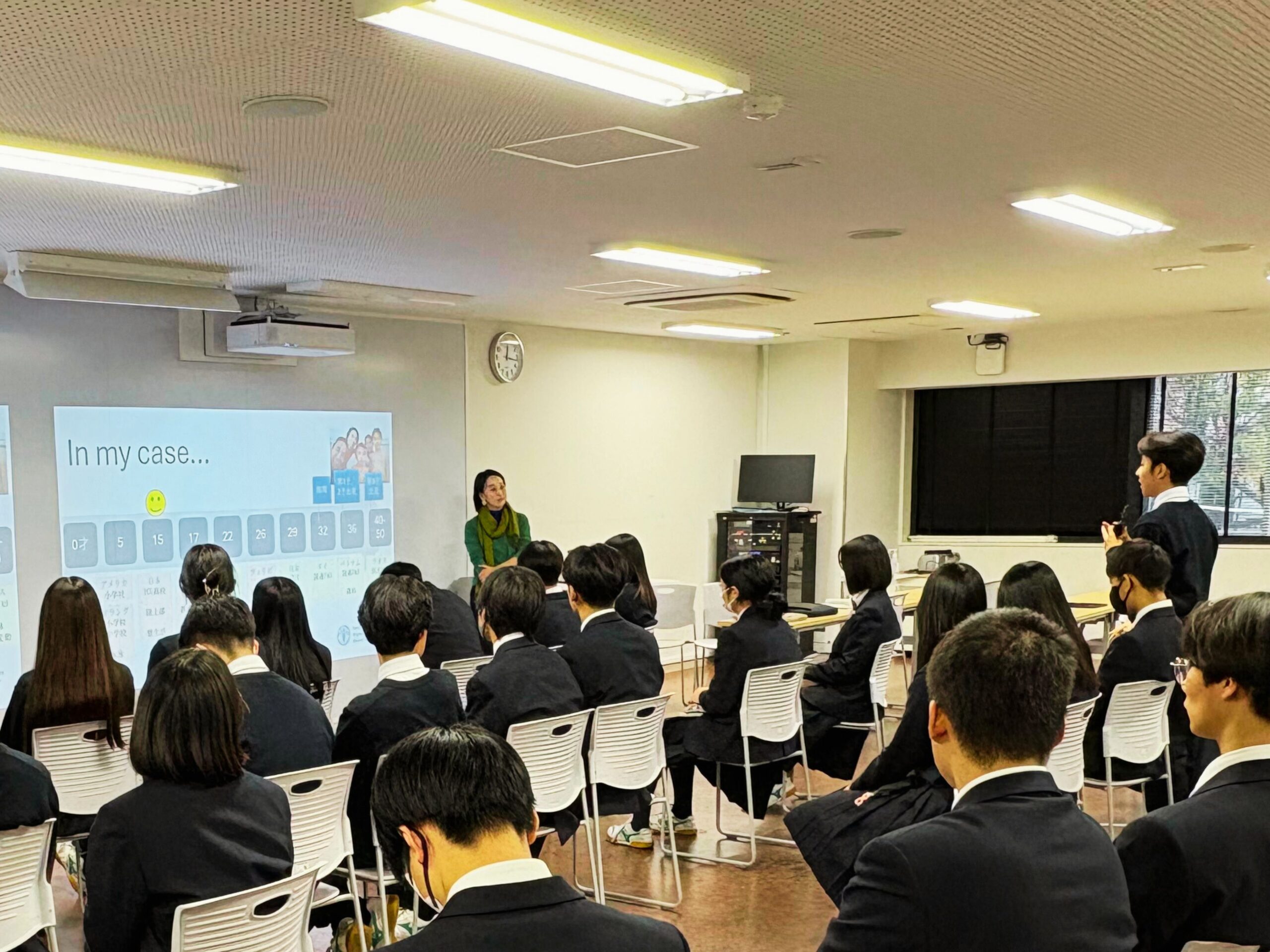 森林減少や温暖化についてなど、クイズを交えながら生徒たちは様々な見方で学びを深めました。