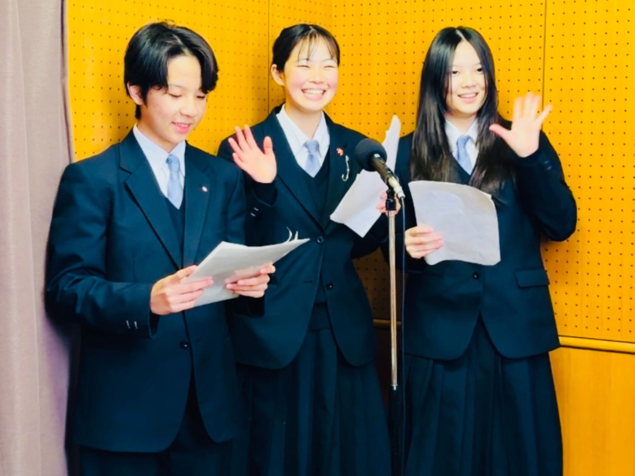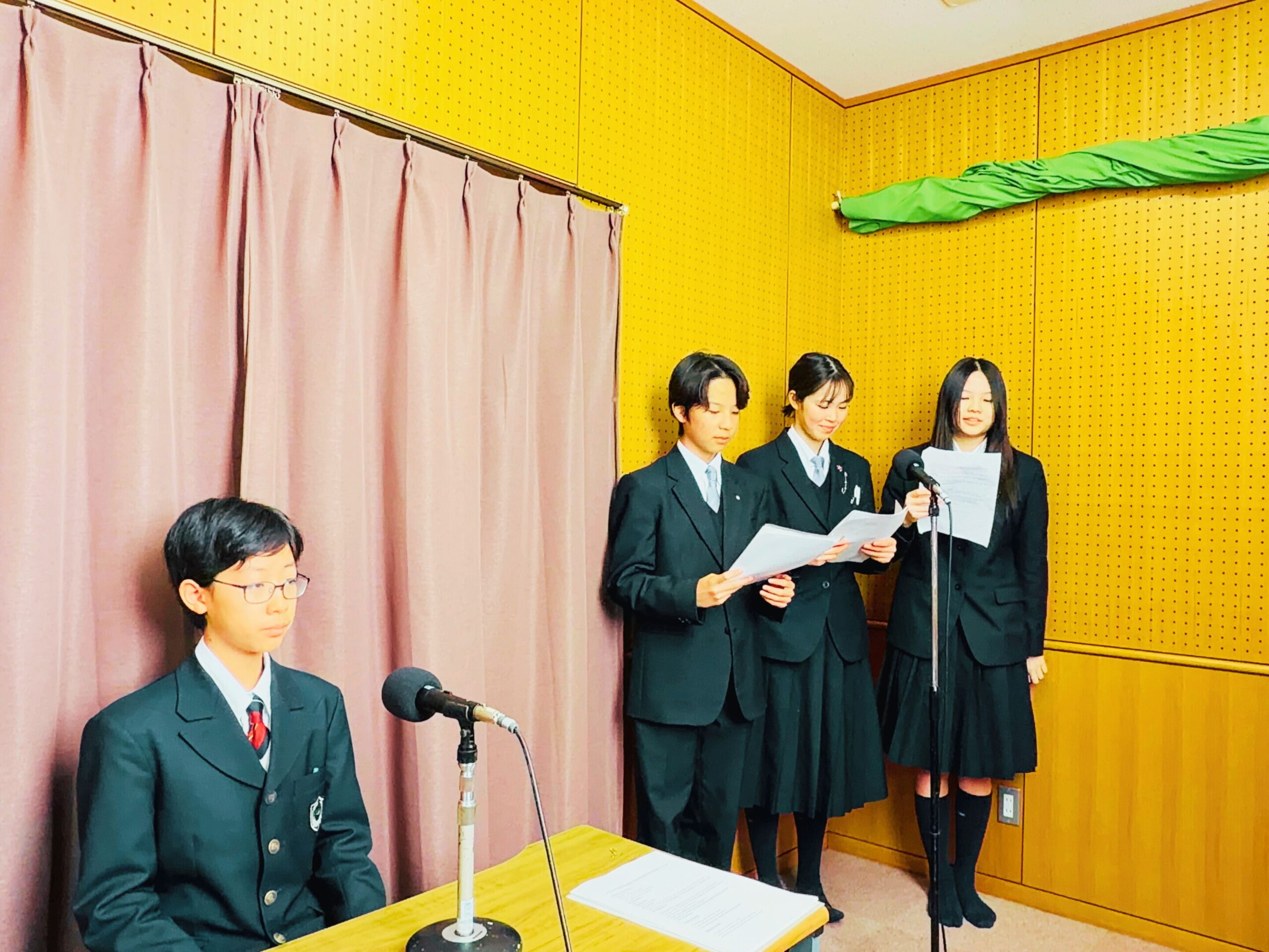 学校長挨拶、留学生のスピーチ、そして中学生のGSSサークルの生徒による天気予報などすべて英語で放送しました。