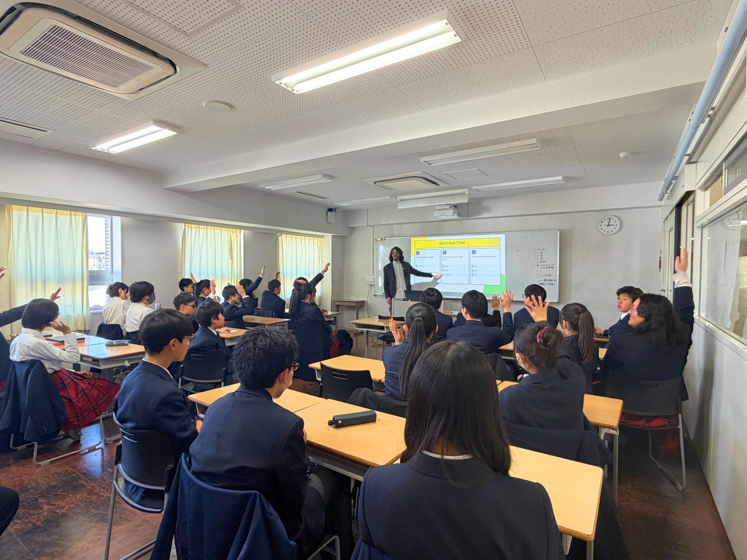 研修員の方は、本校のICT教育を学ばれた後に自国のことについても発表していただき